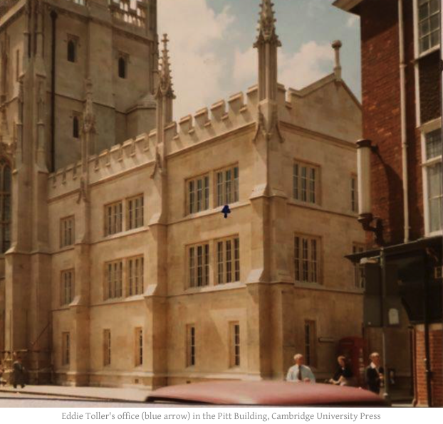 In my time there, I worked just a few offices from my beloved father, Eddie Toller. He had worked at the old C.U.P. building, in Trumpington Street, from the age of fifteen and had worked his way up to become one of the managers and ‘Production Liaison Officer.’