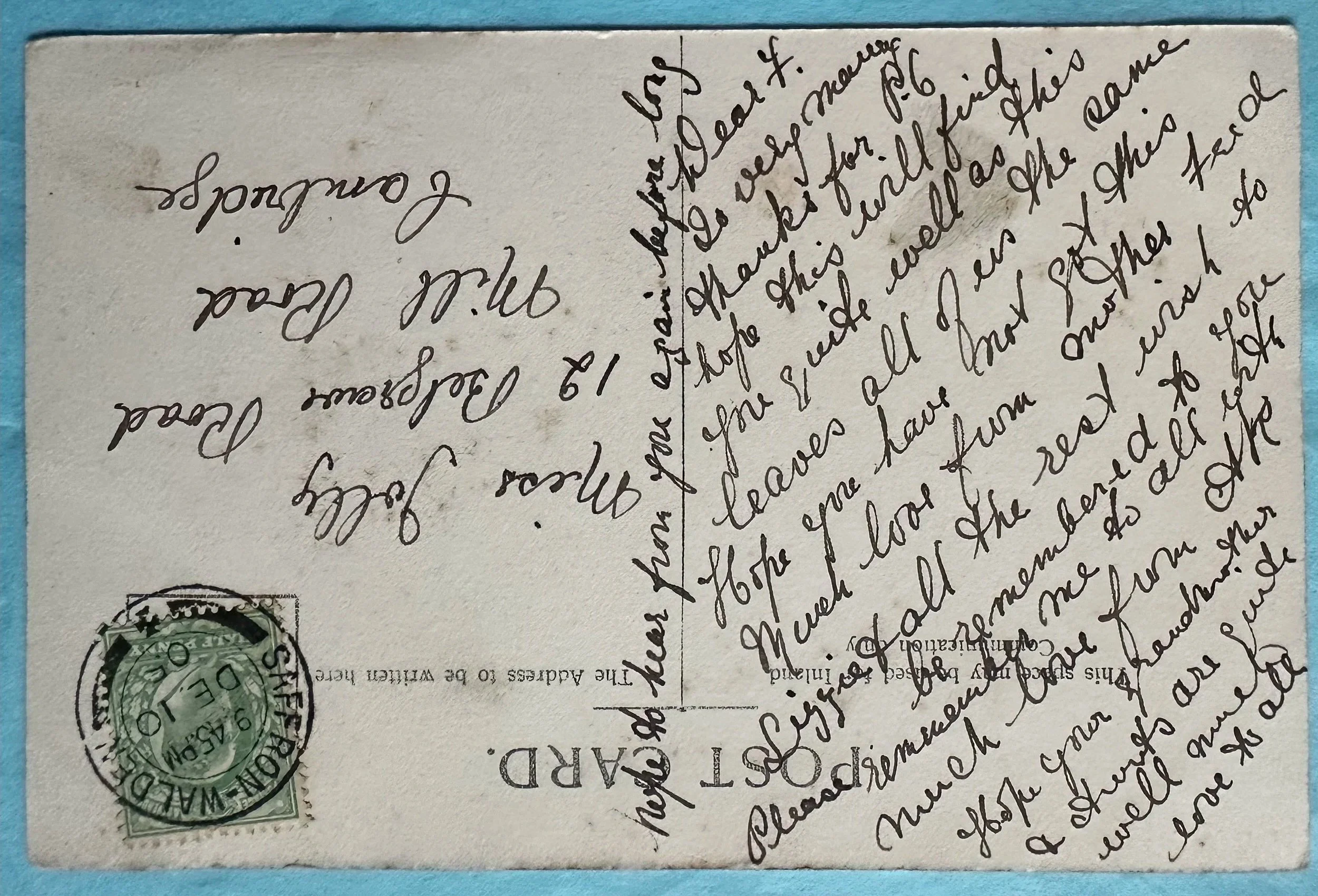 The postcard reads as follows: