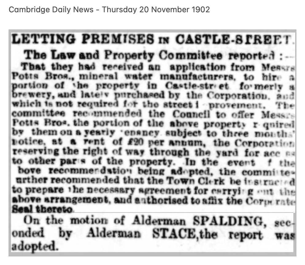 The Potts Bros would make a great research project as so little seems to have been written about them. It would be worthwhile looking at both their sites in Cambridge and Newmarket (Fordham) and finding out, not only their company history, but how and where they manufactured both the drinks and bottles etc. also more about the Potts brothers themselves.