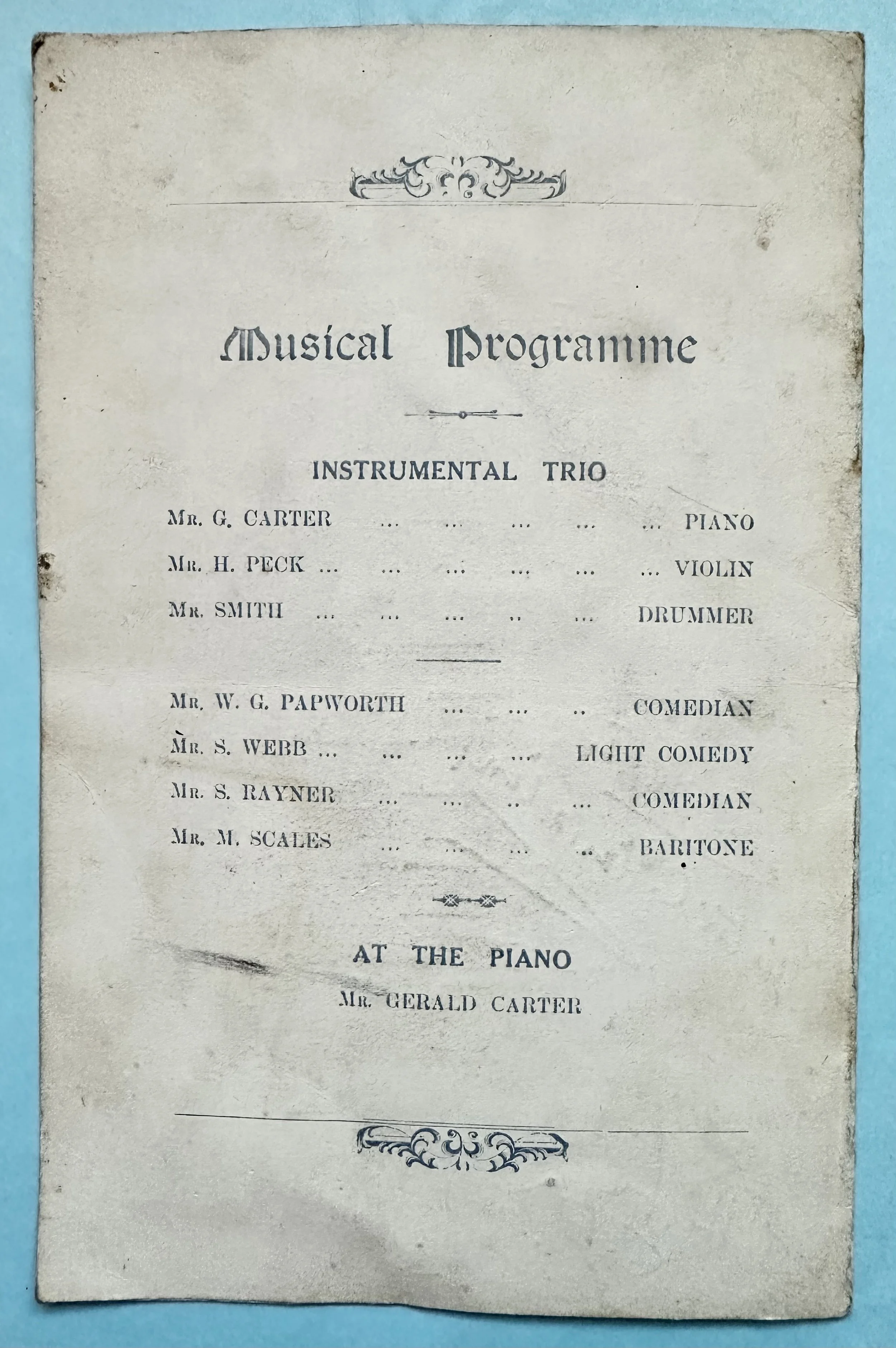 Romsey Old Boys' Football Club Dinner Programme 1923 for the ‘Third Annual Dinner and Smoking Concert’ held at the Dorothy Cafe in Cambridge on Thursday May 24th 1923.