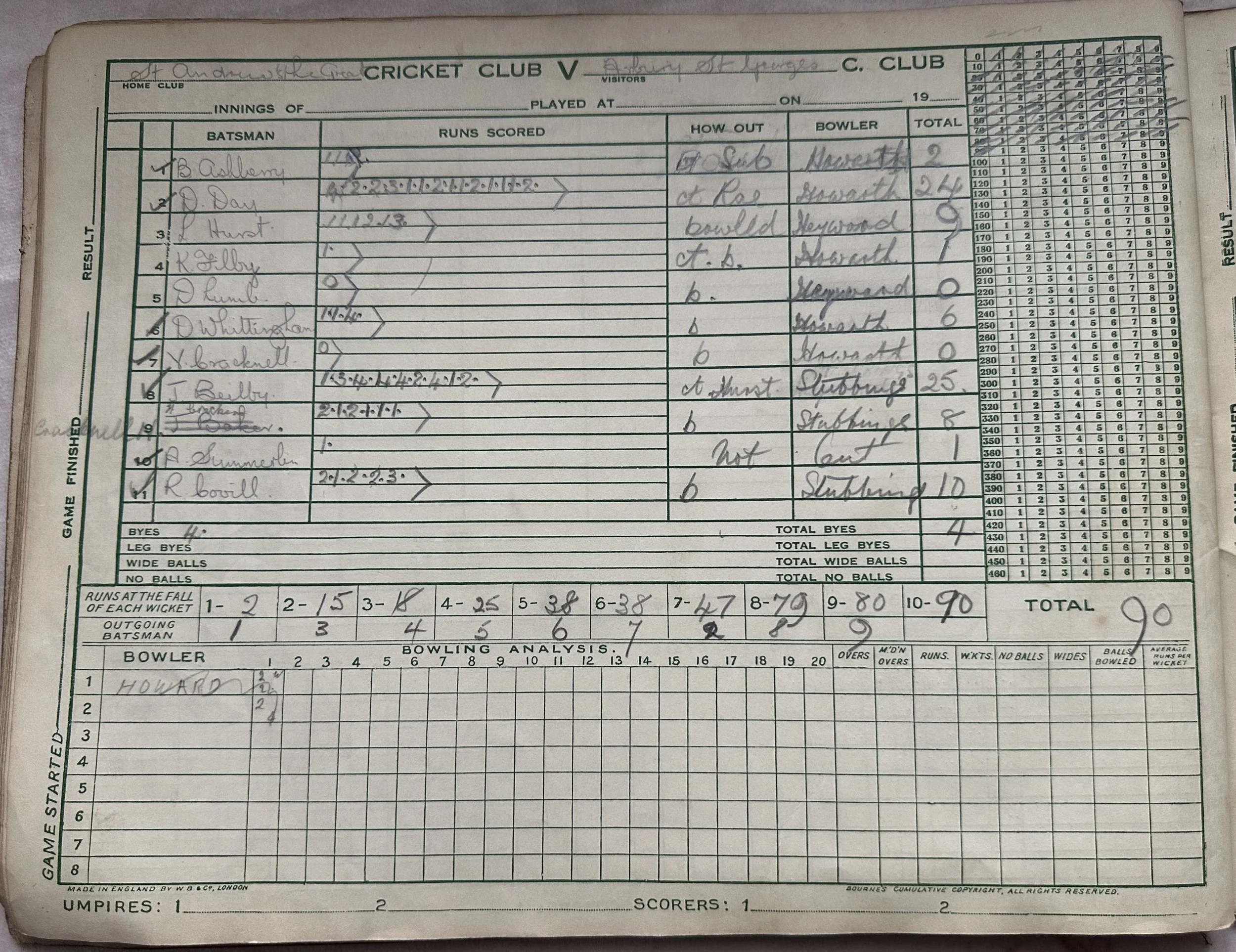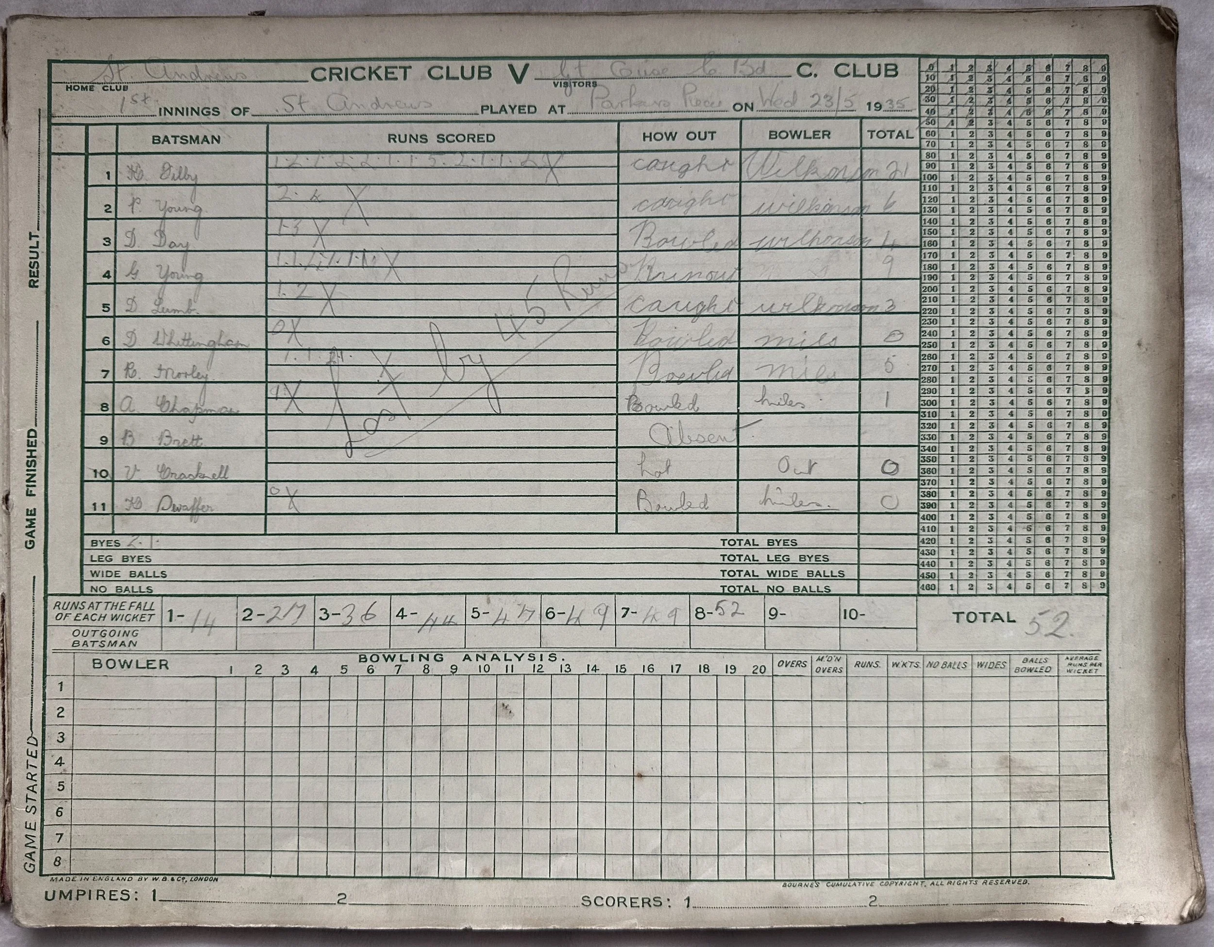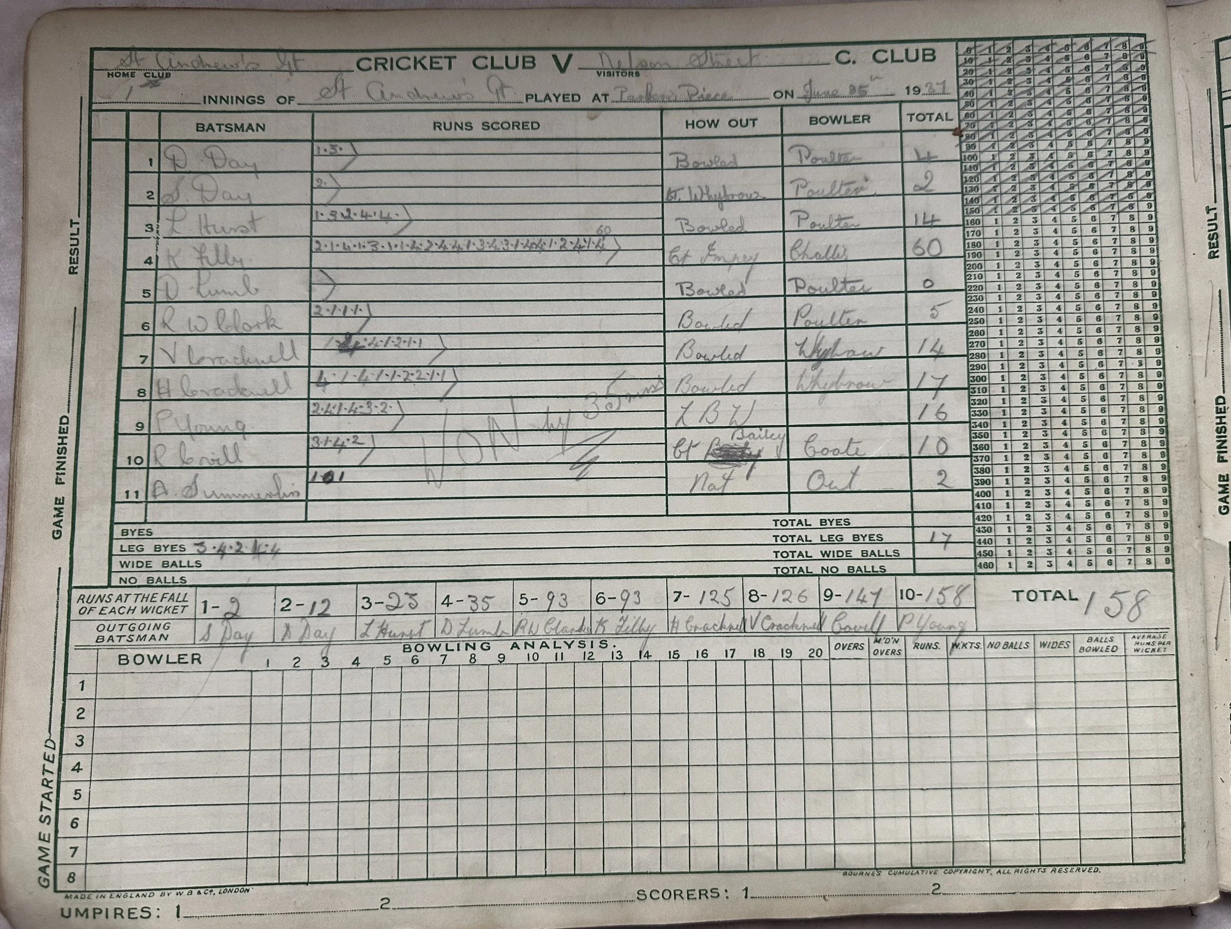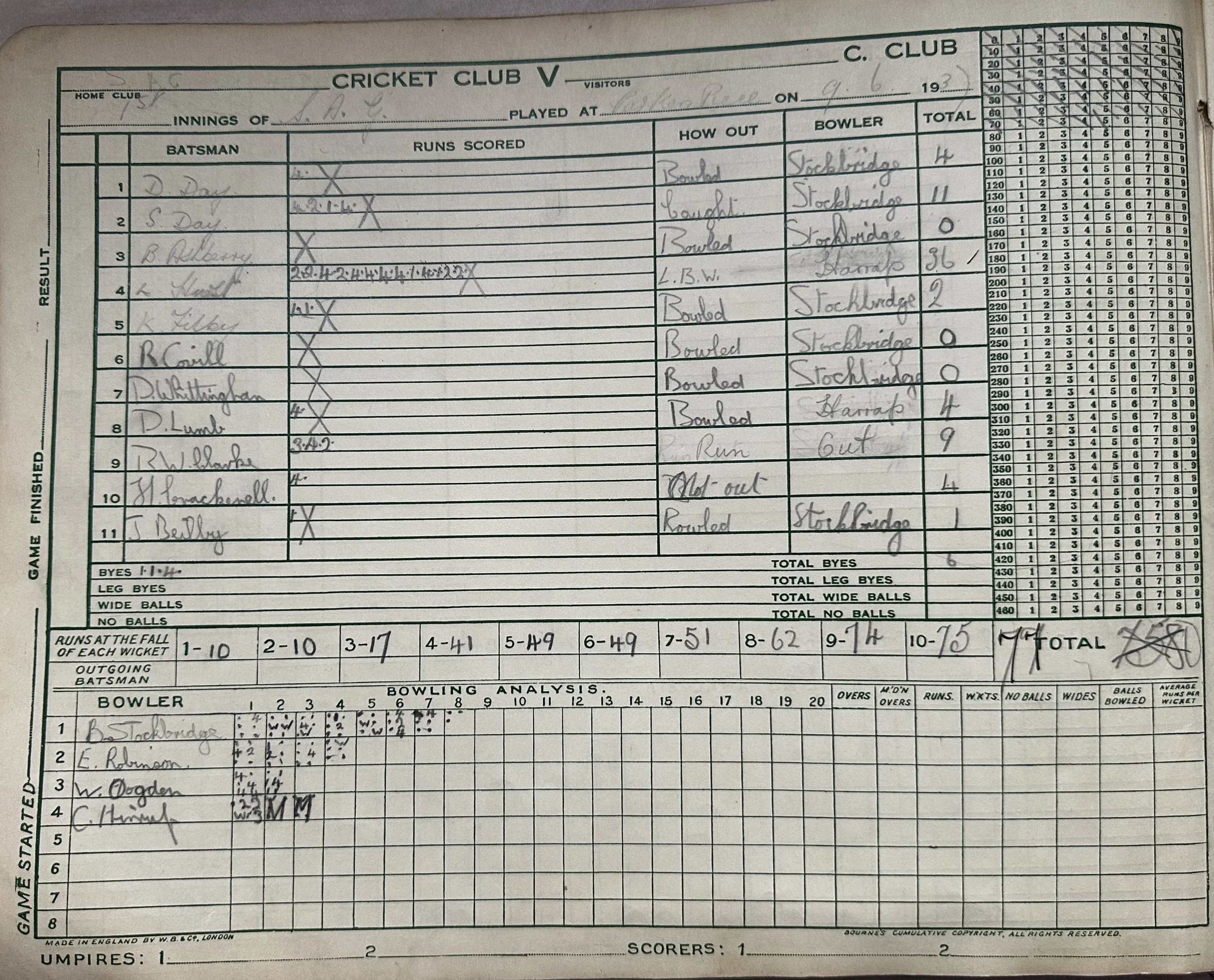 St Andrew’s Fellowship Cricket Club Cambridge -Scoring Book 1935 -1937 Season