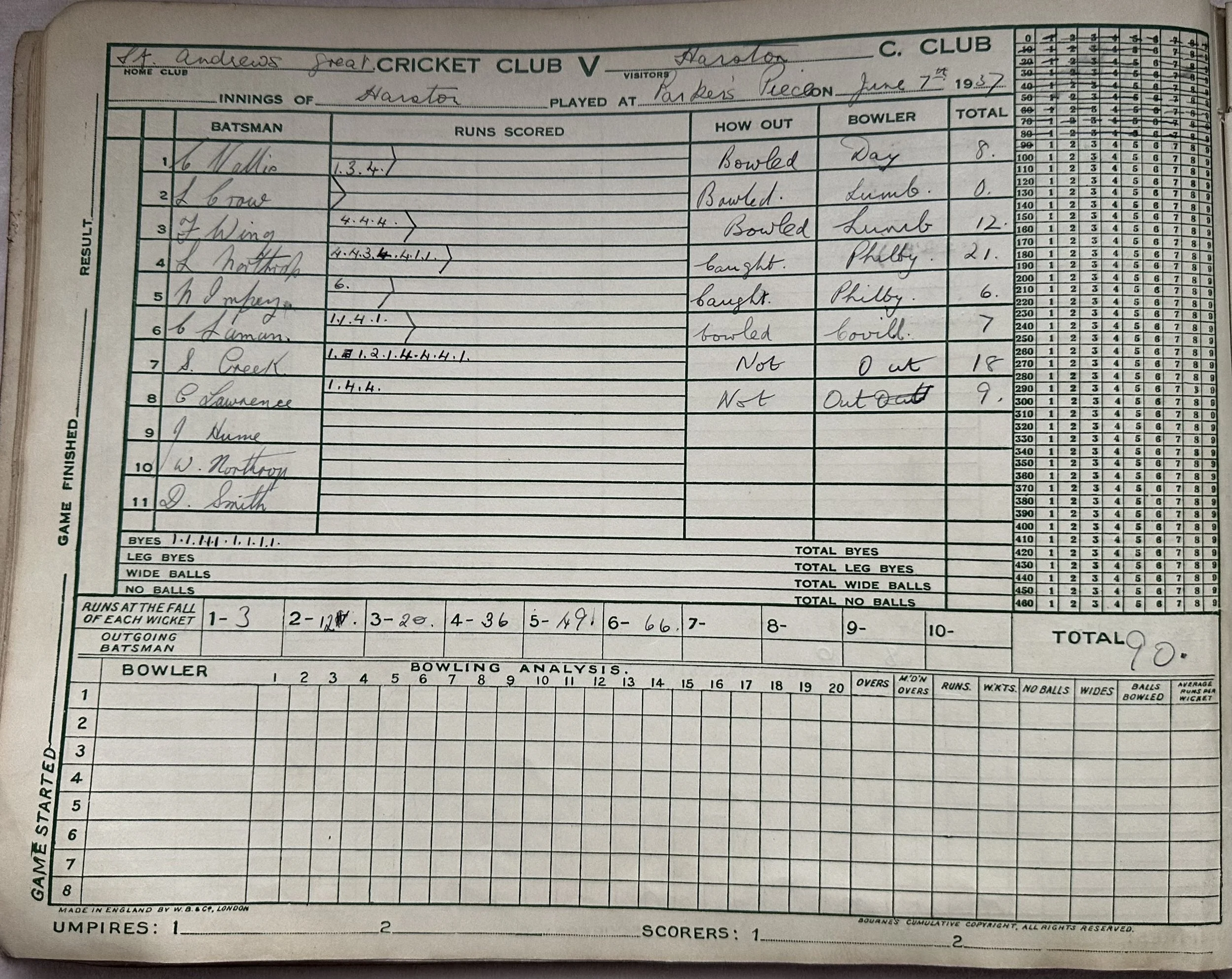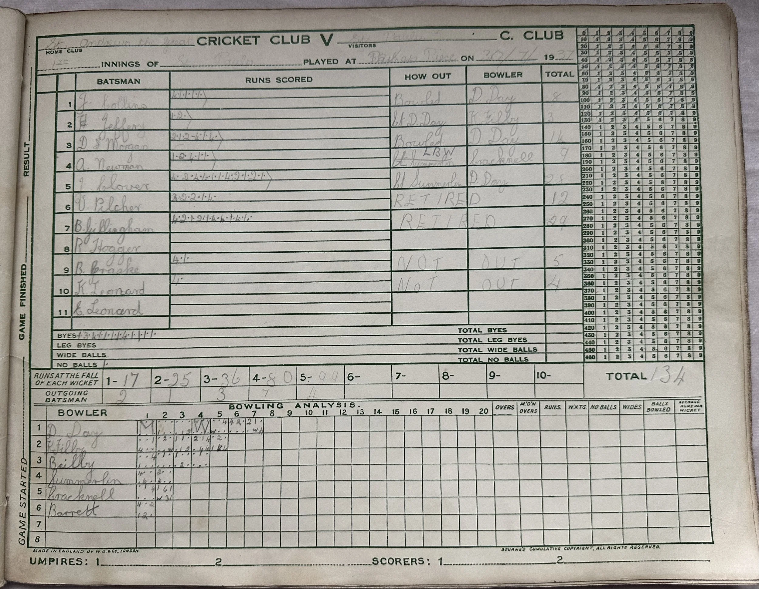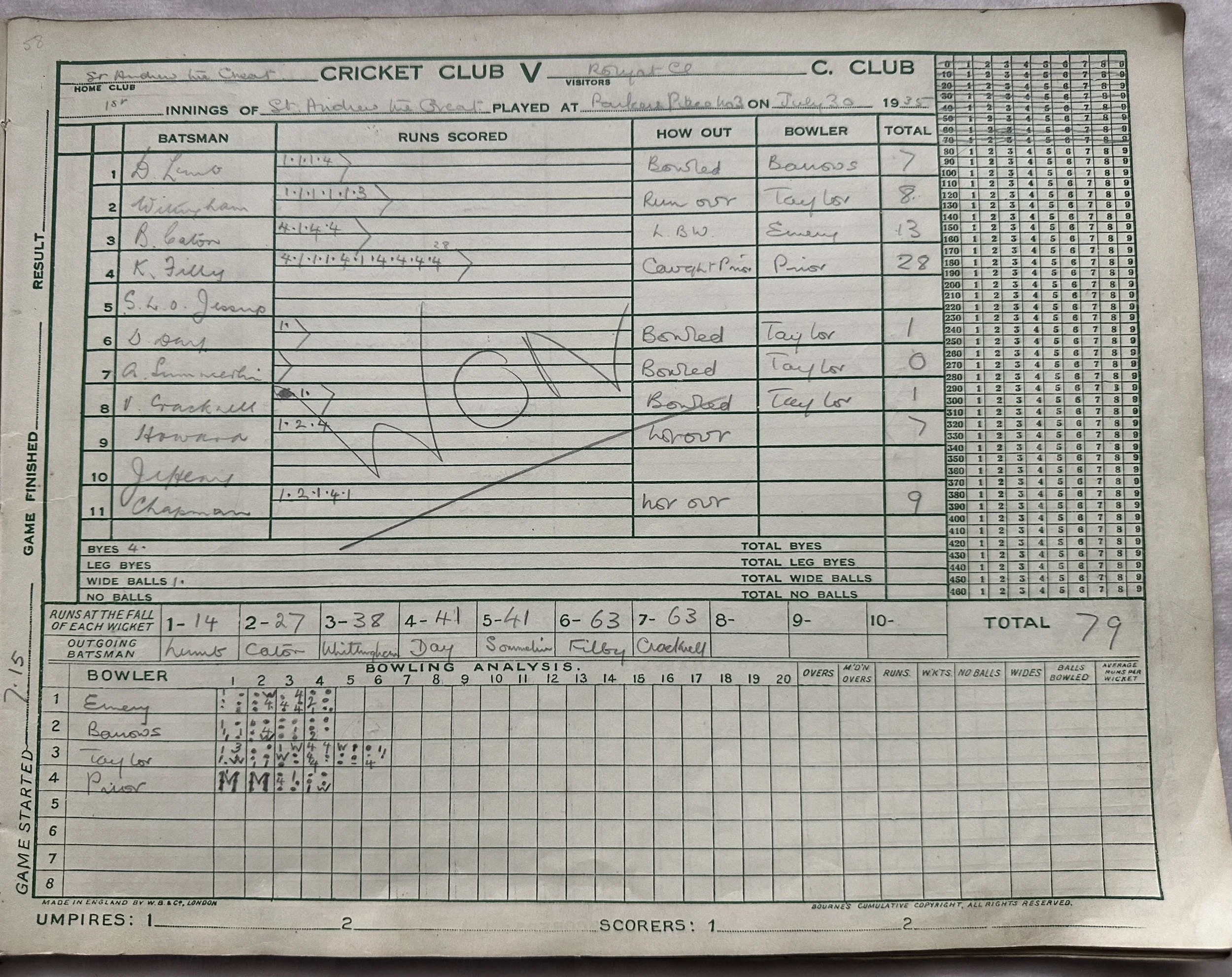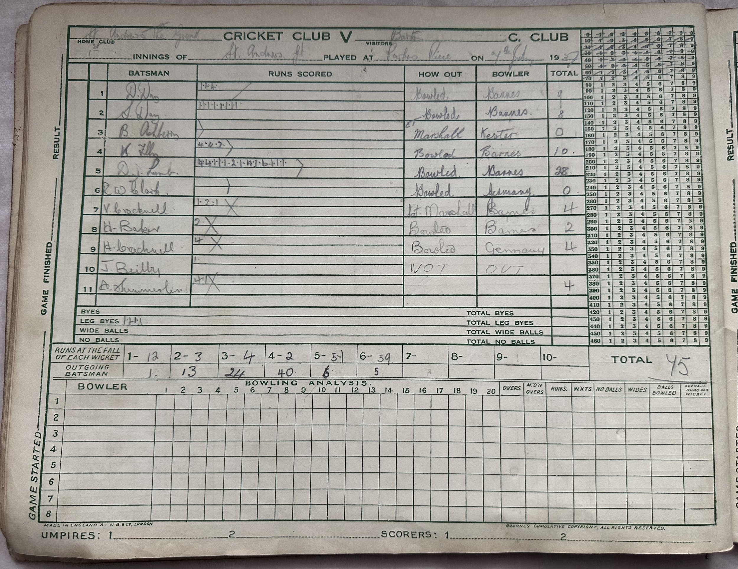 St Andrew’s Fellowship Cricket Club Cambridge -Scoring Book 1935 -1937 Season