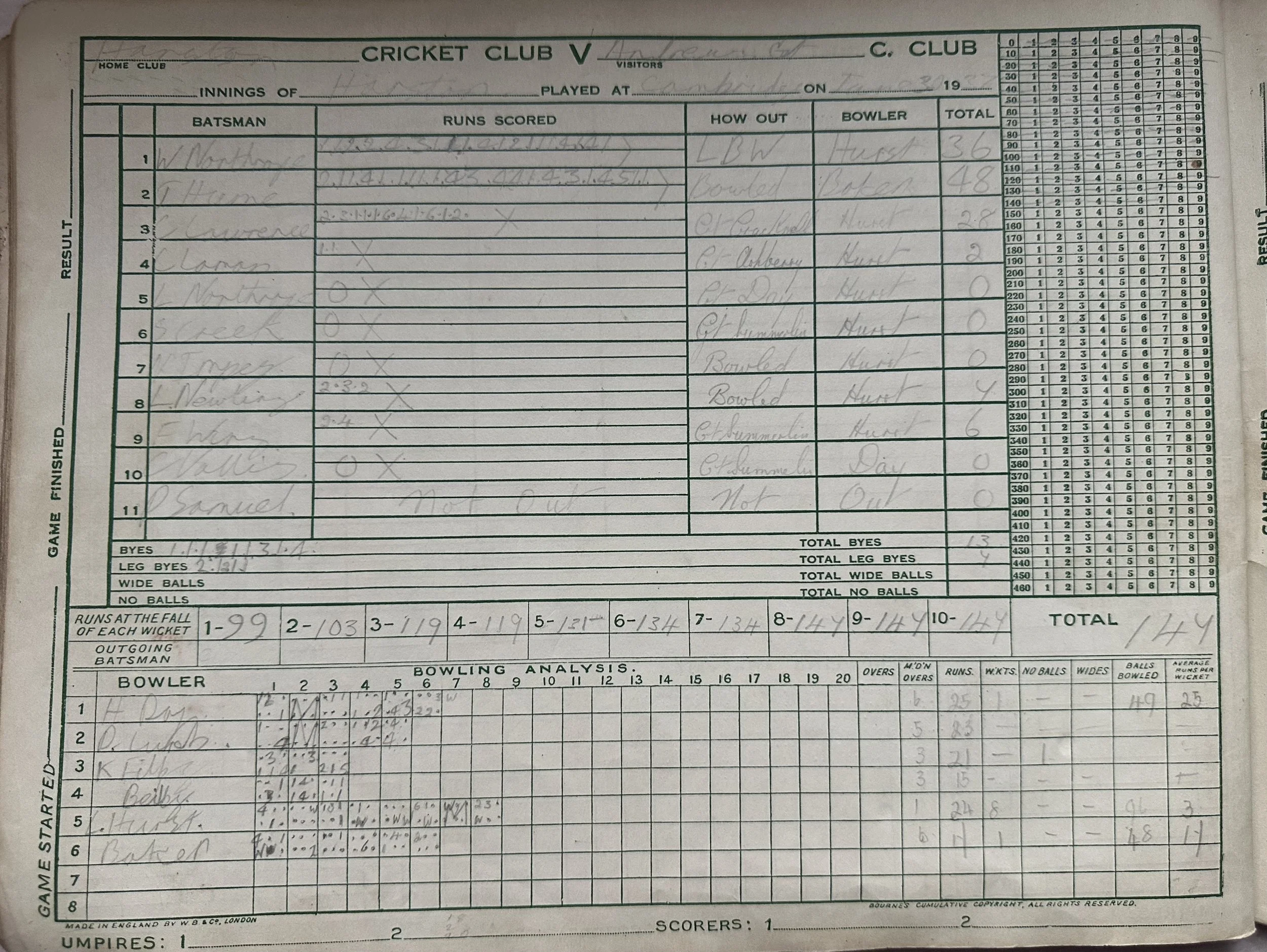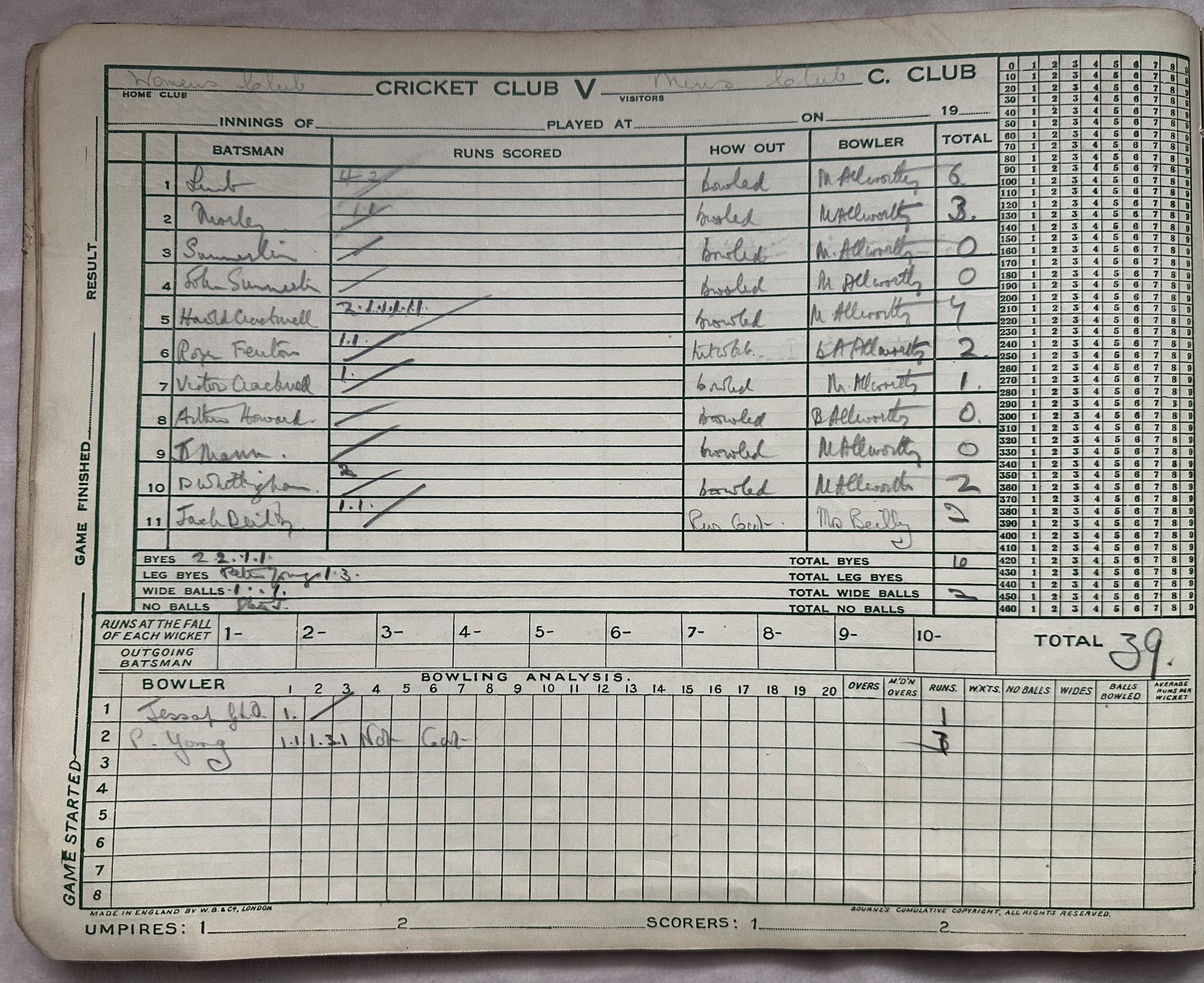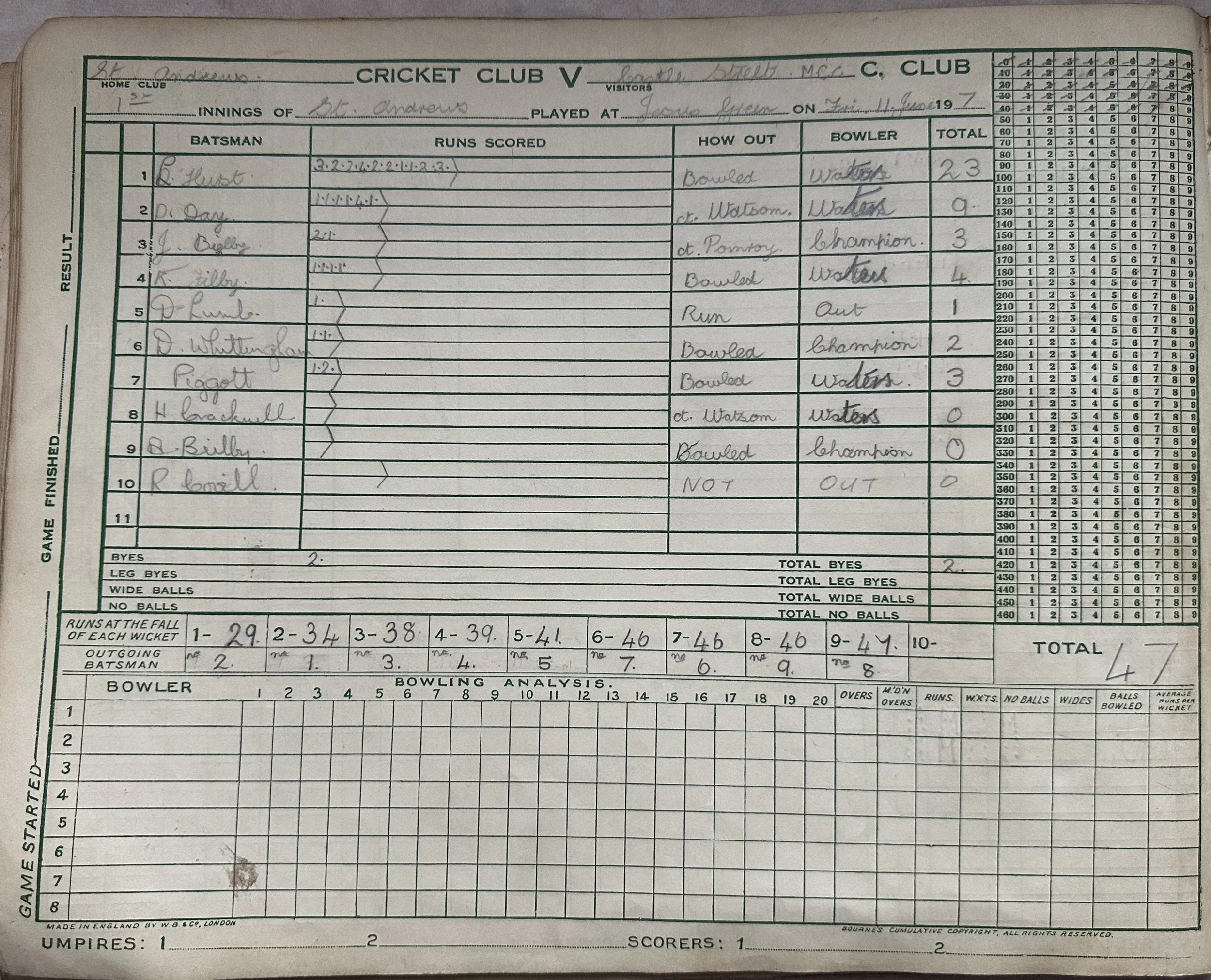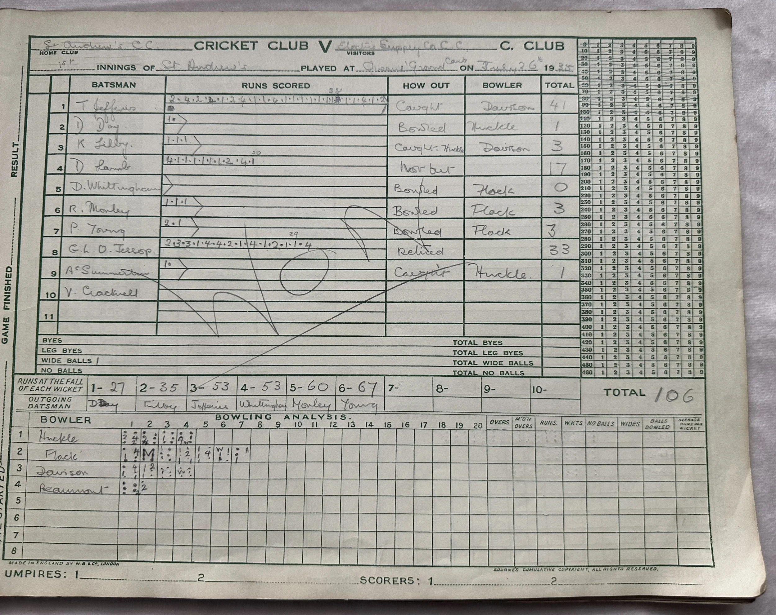St Andrew’s Fellowship Cricket Club Cambridge -Scoring Book 1935 -1937 Season