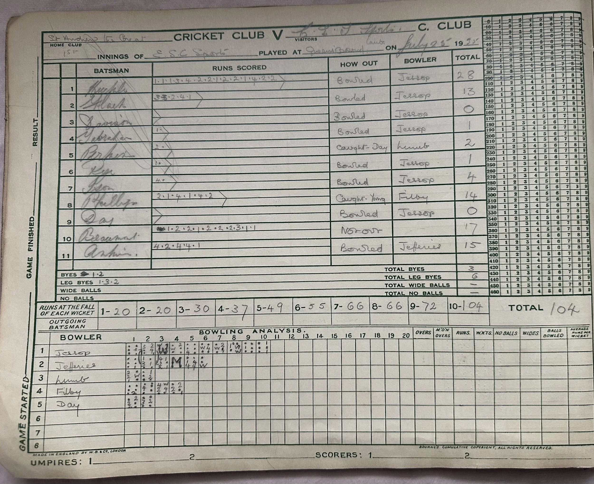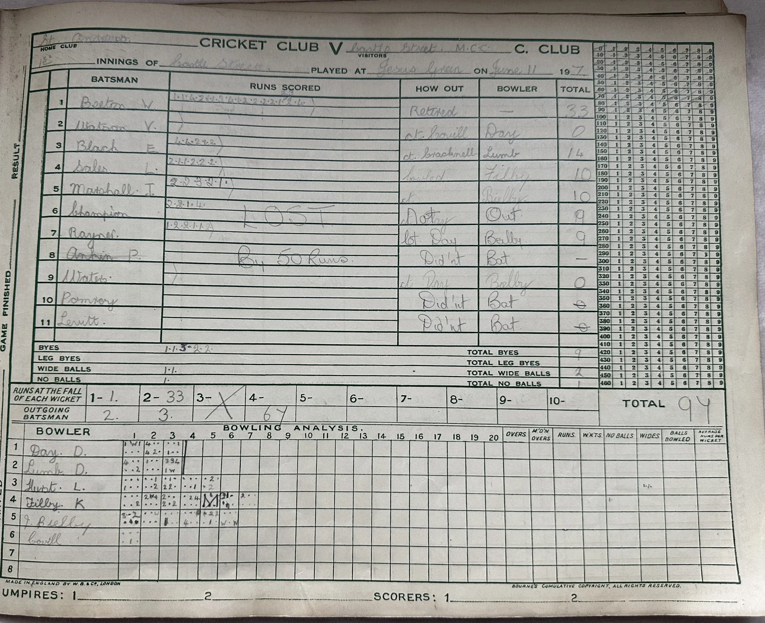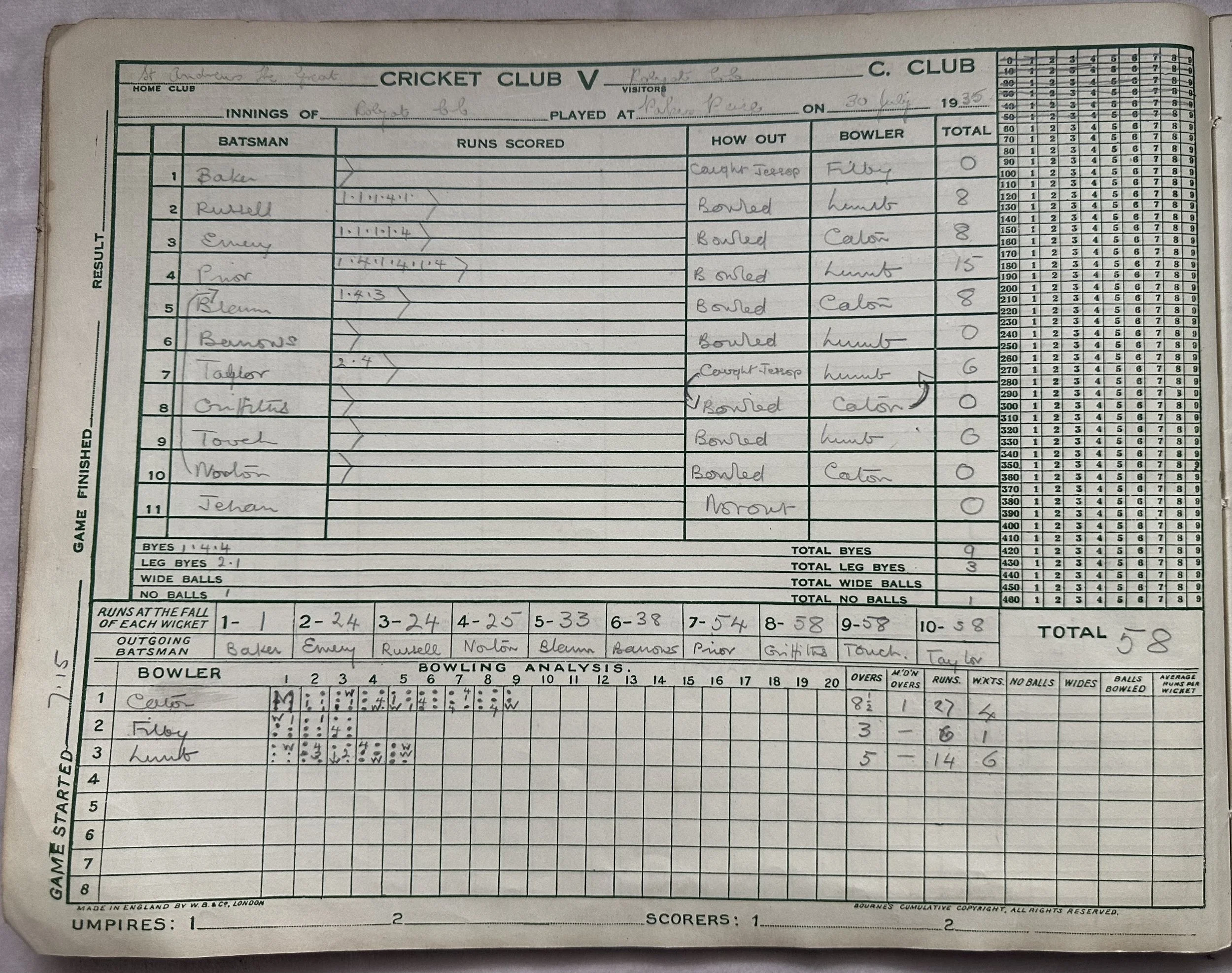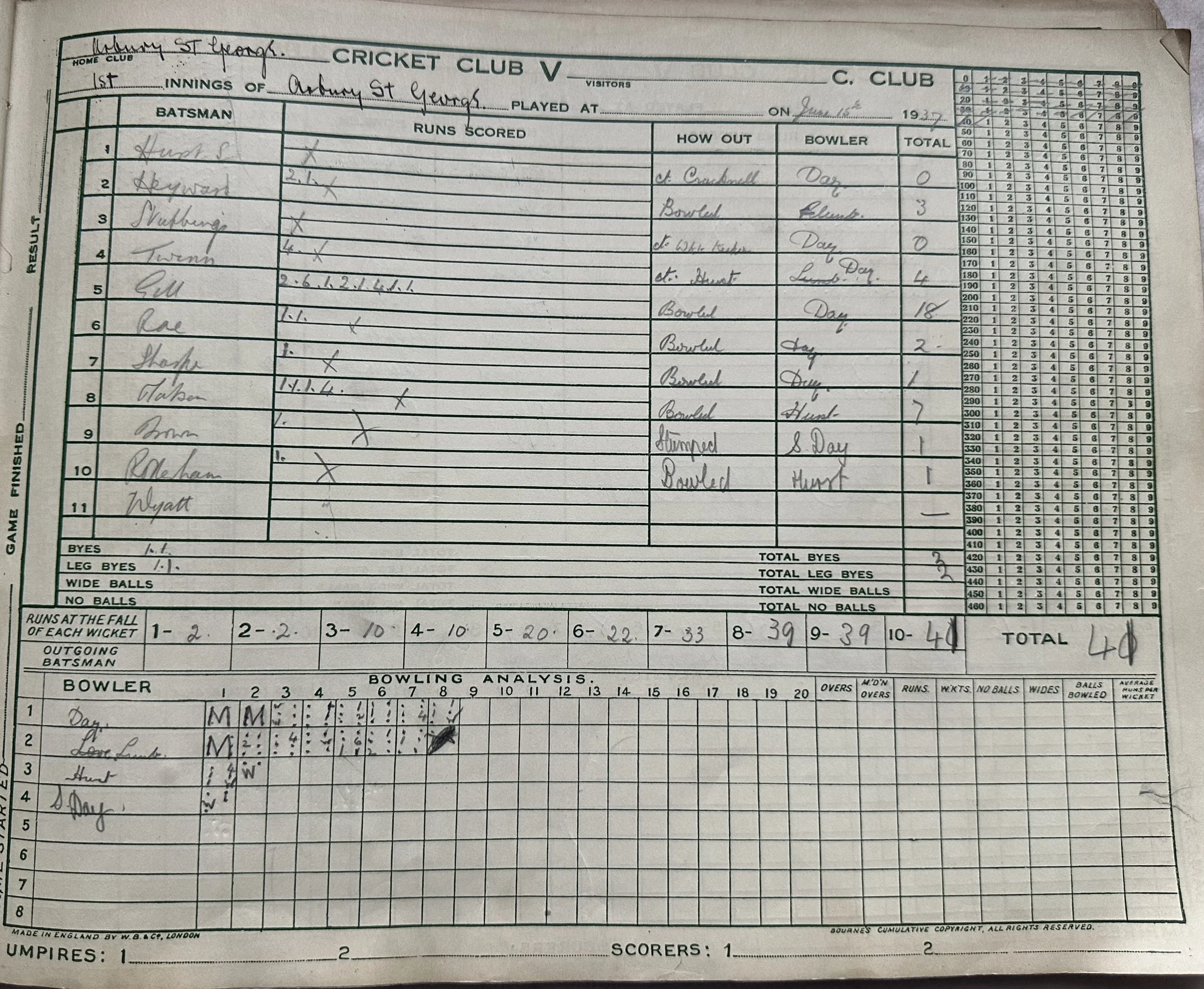 St Andrew’s Fellowship Cricket Club Cambridge -Scoring Book 1935 -1937 Season