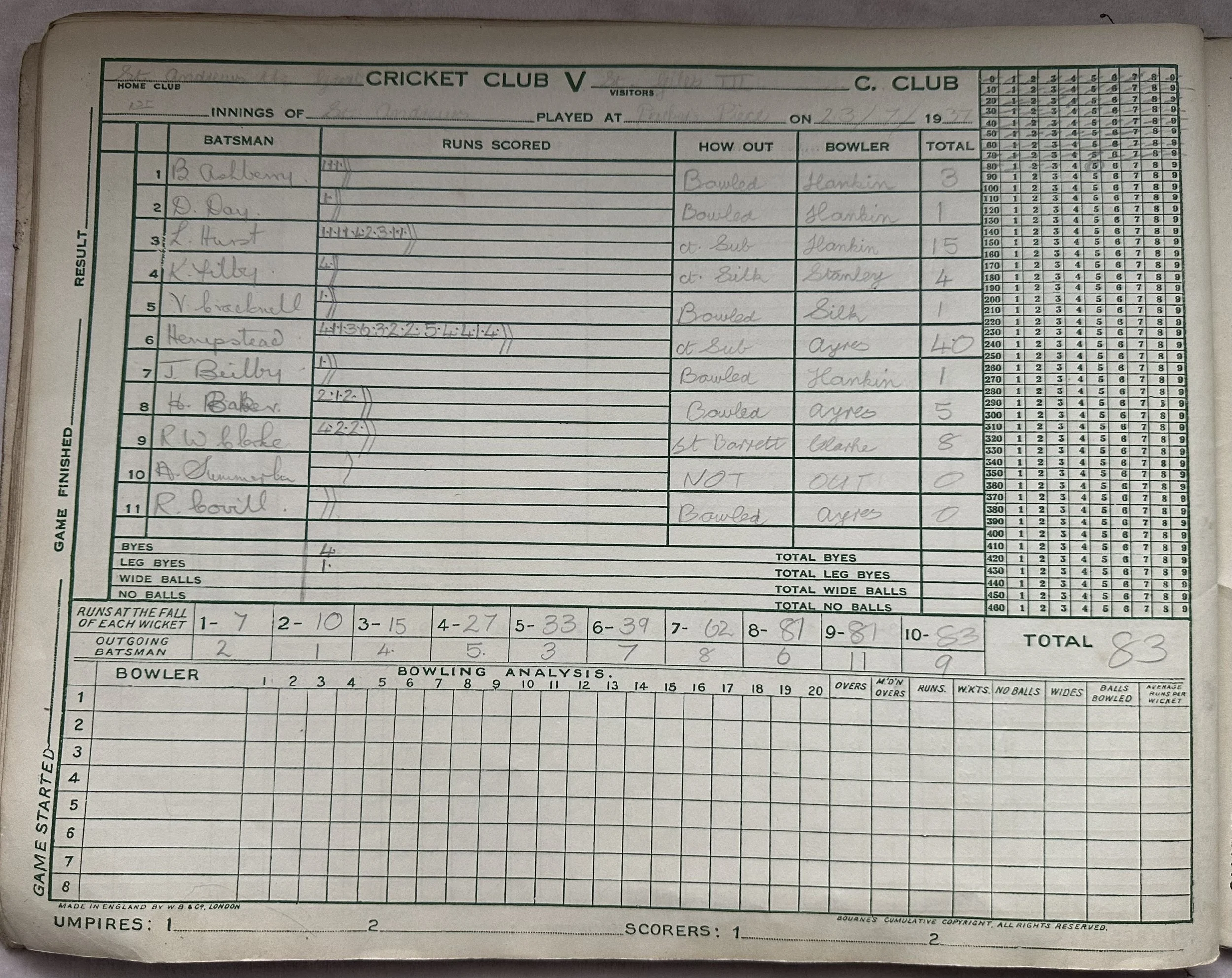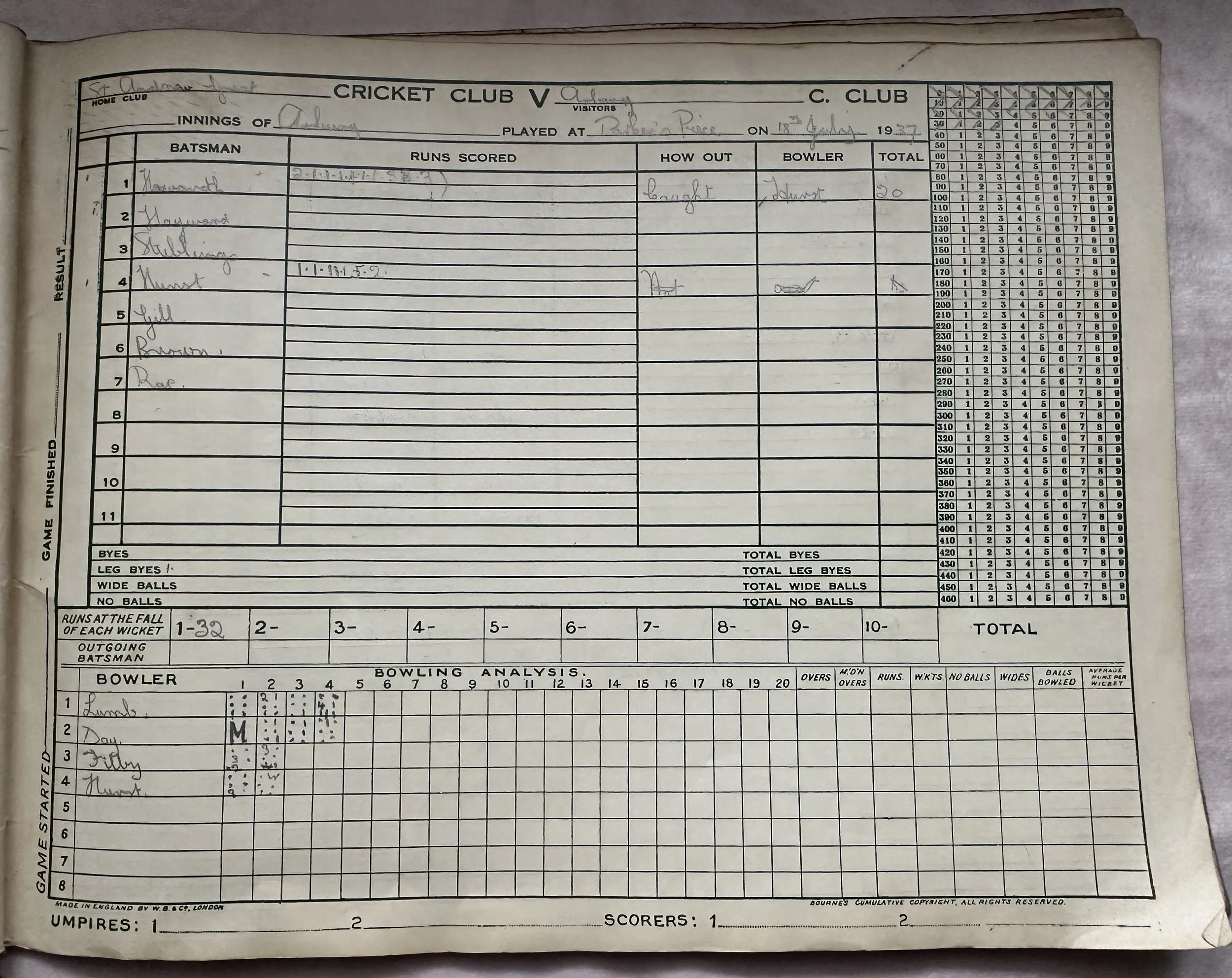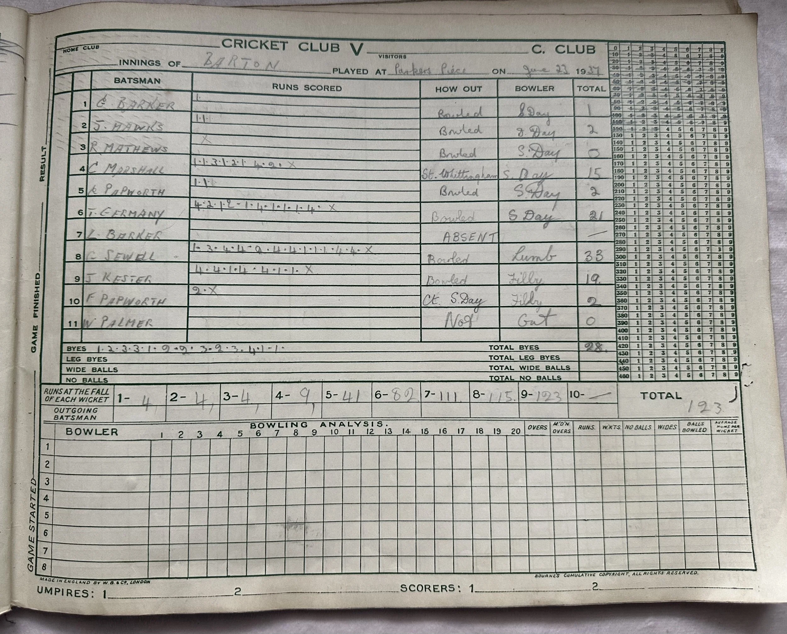 St Andrew's The Great Fellowship Cricket Club Cambridge - Scoring Book 1935-1937 Season.