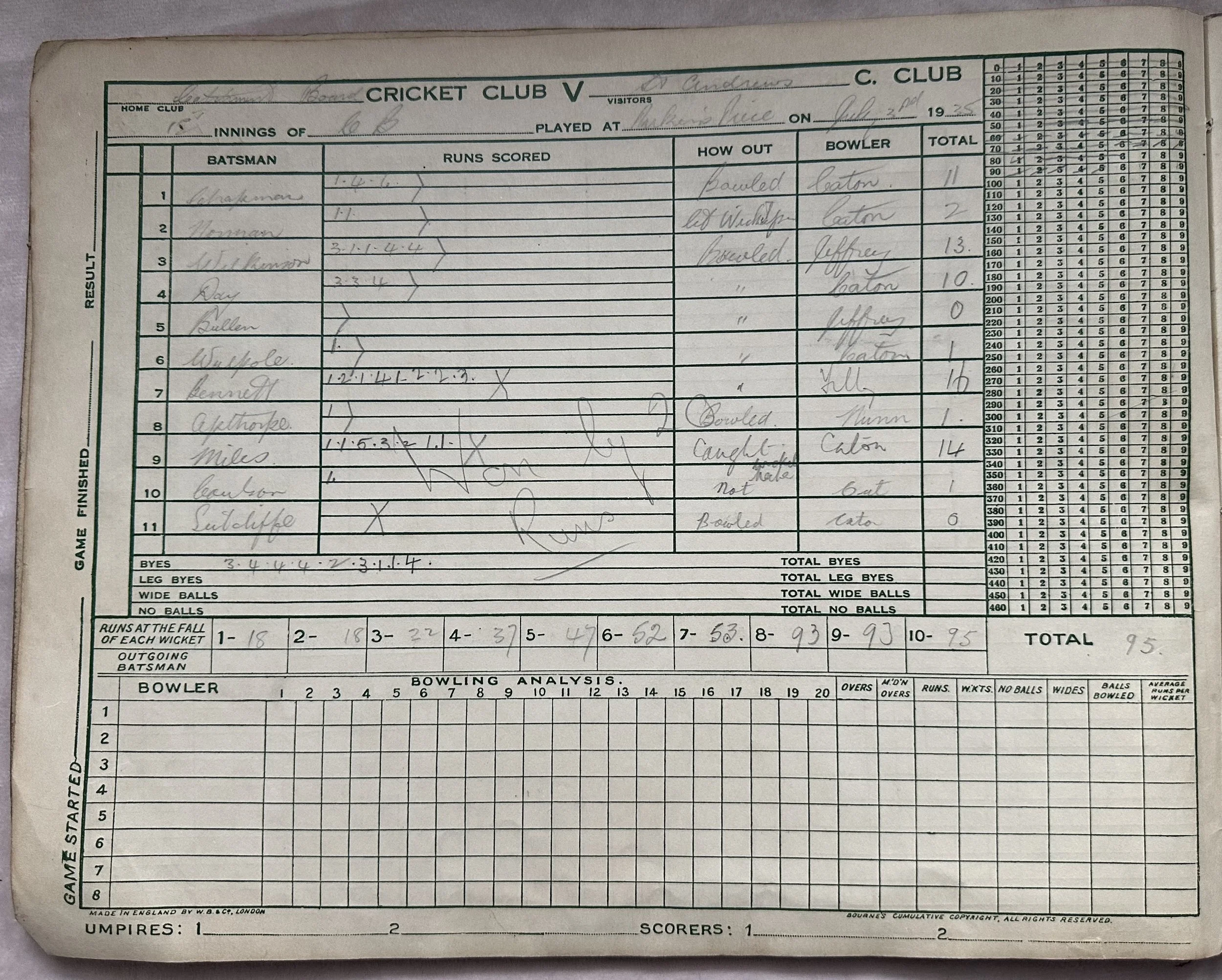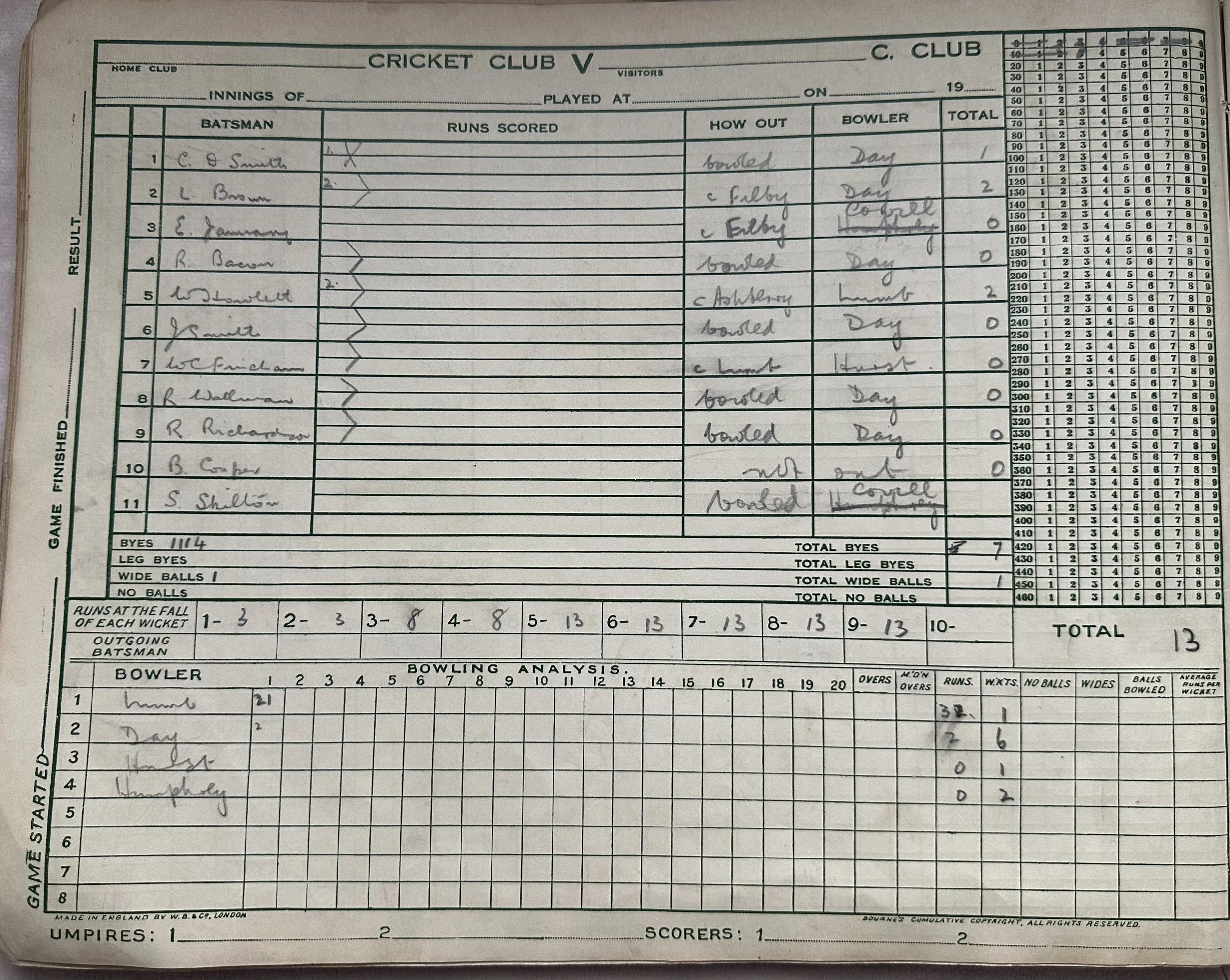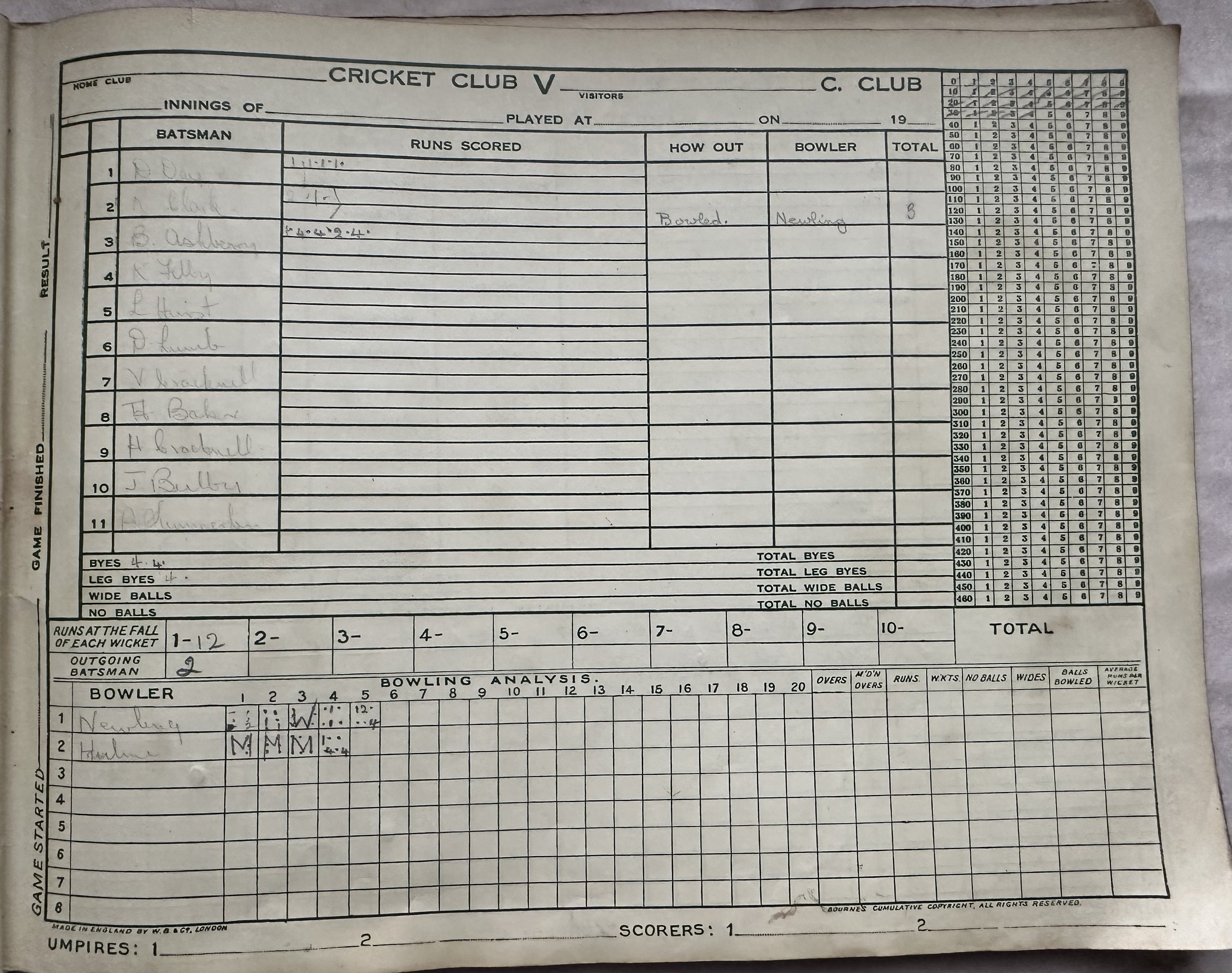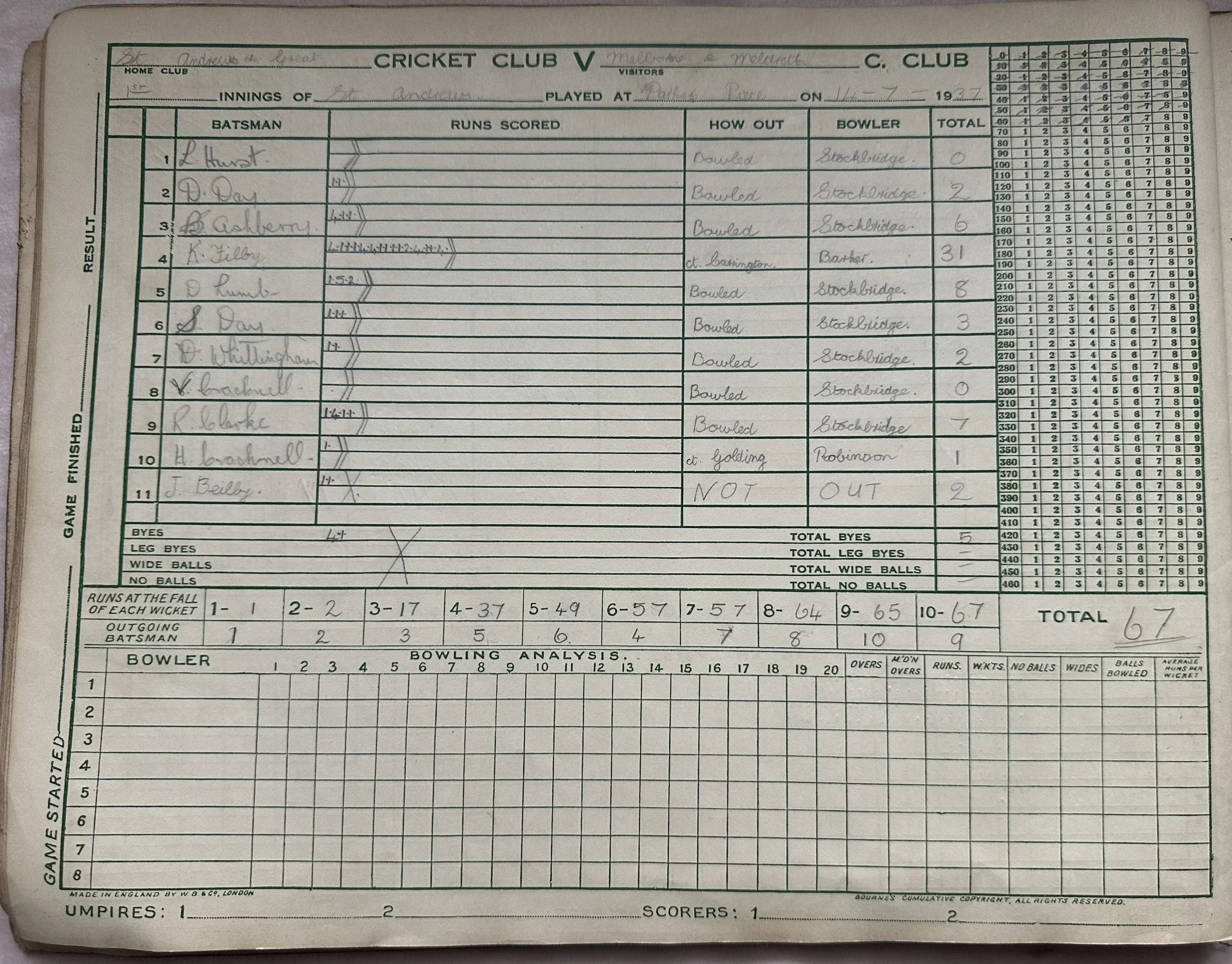 St Andrew's The Great Fellowship Cricket Club Cambridge - Scoring Book 1935-1937 Season.