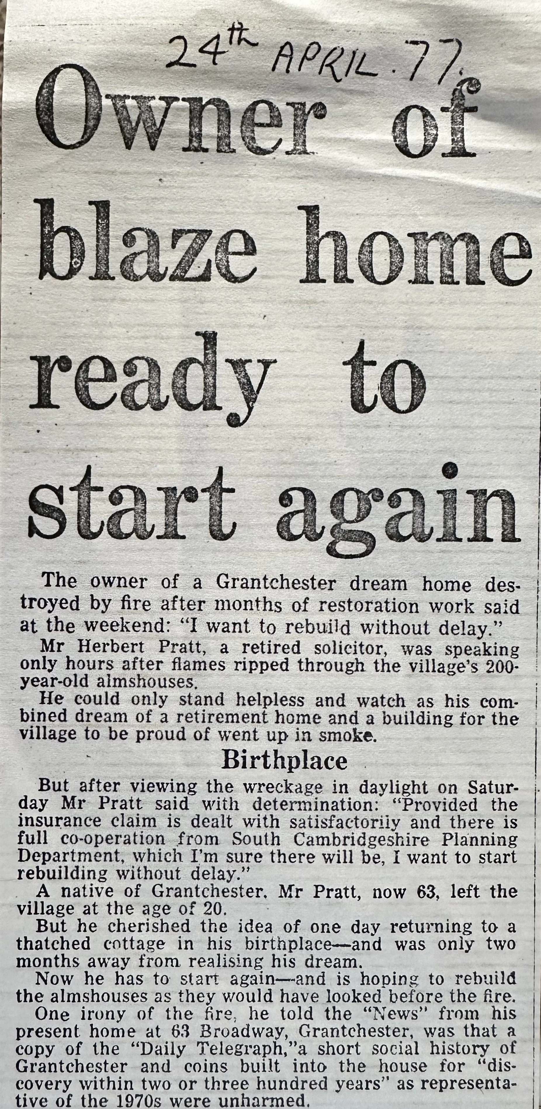 There are also a couple of newspaper clips about the fire that were with Colin’s photographs - shown below.