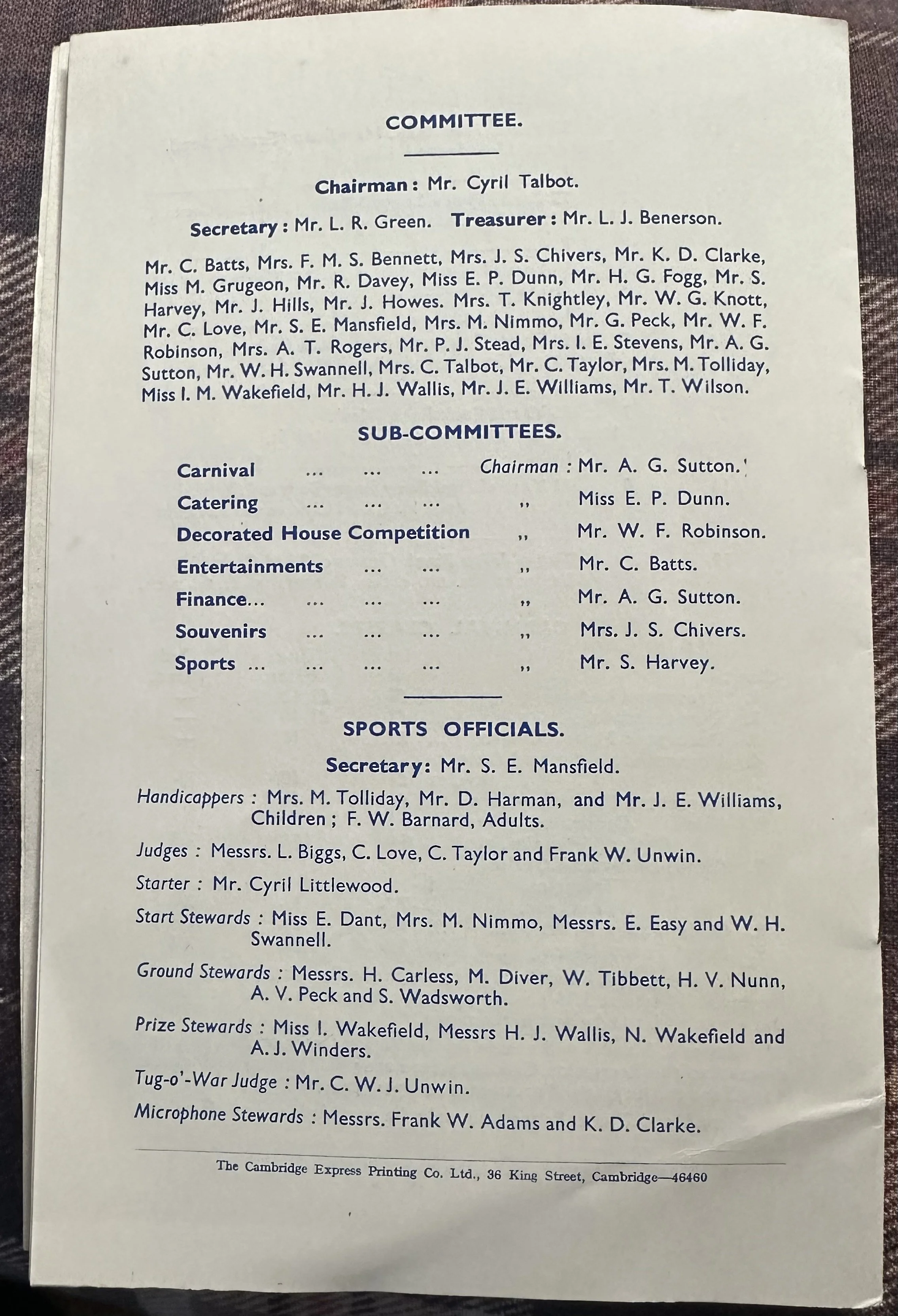 Histon and Impington Coronation Day Souvenir Programme1953. (Michelle Bullivant Collection)