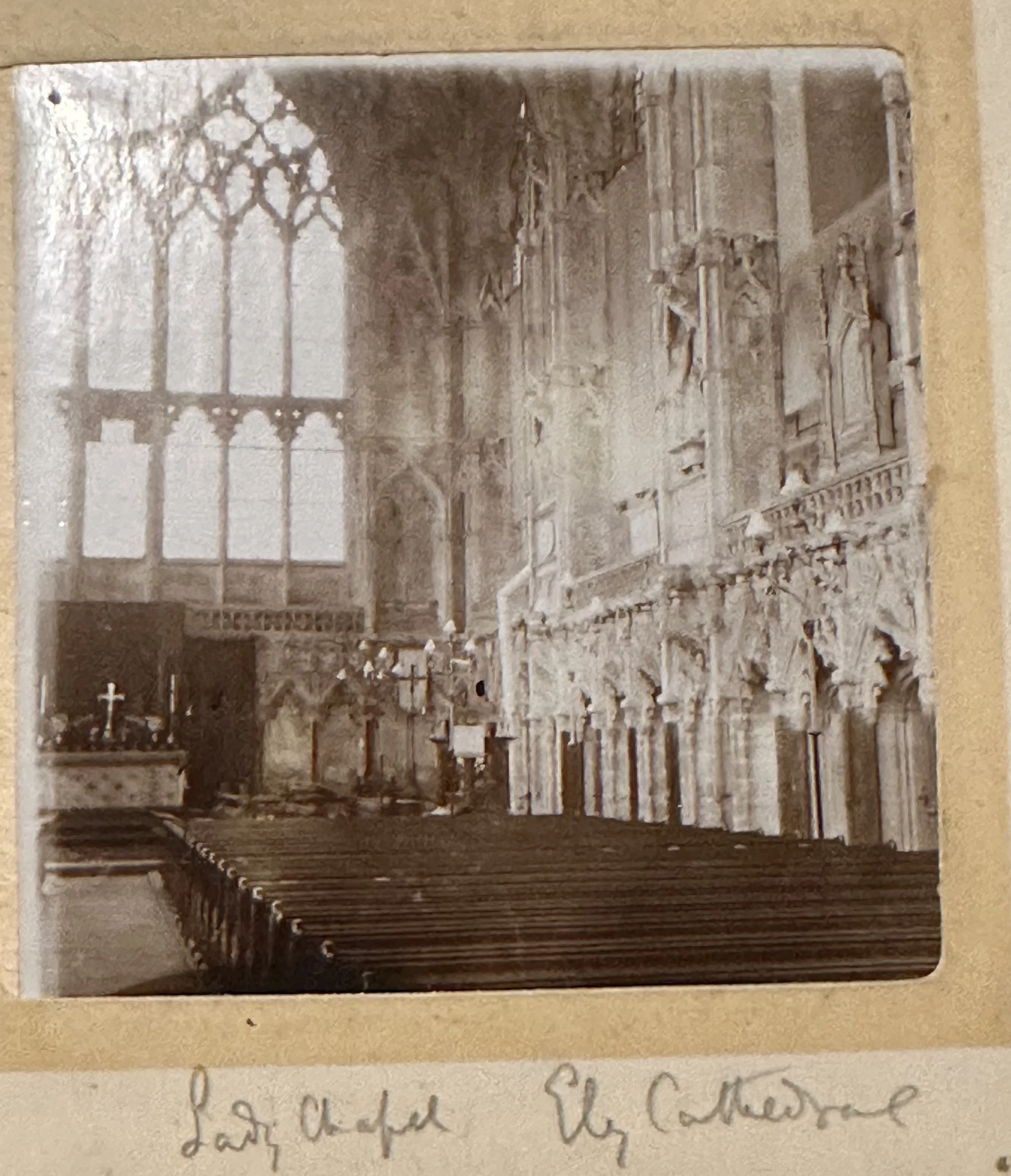 Lady Chapel Ely Cathedral c.1911 Ely 6 Dec Written By Michelle Bullivant View fullsize Lady Chapel Ely Cathedral c.1911 This is a photograph c.1911 from an album containing photographs of a field trip from Burwell to Upware (click HERE to see those photographs) and photographs in Cambridge (click HERE to see those). View fullsize View fullsize ElyEly Cathedral Michelle Bullivant