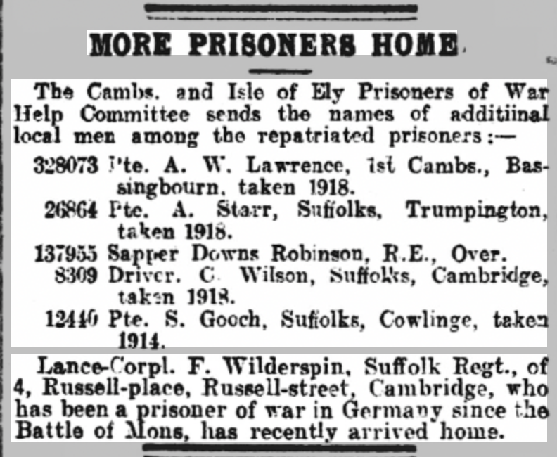 Cambridgeshire and Isle of Ely Prisoners of War Helpers November 1918
