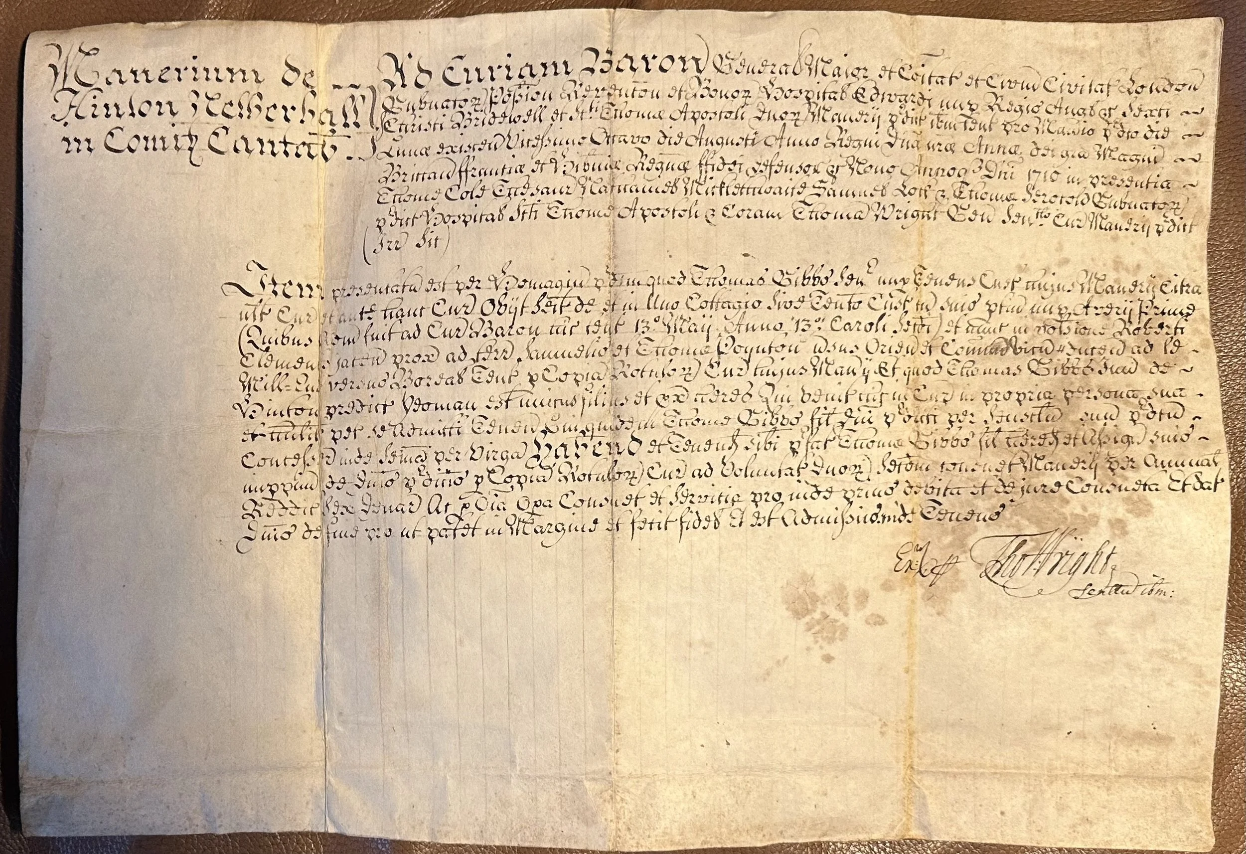 Thomas Bibb was a copyhold tenant of Hinton Netherhall, holding land by the custom of the manor.