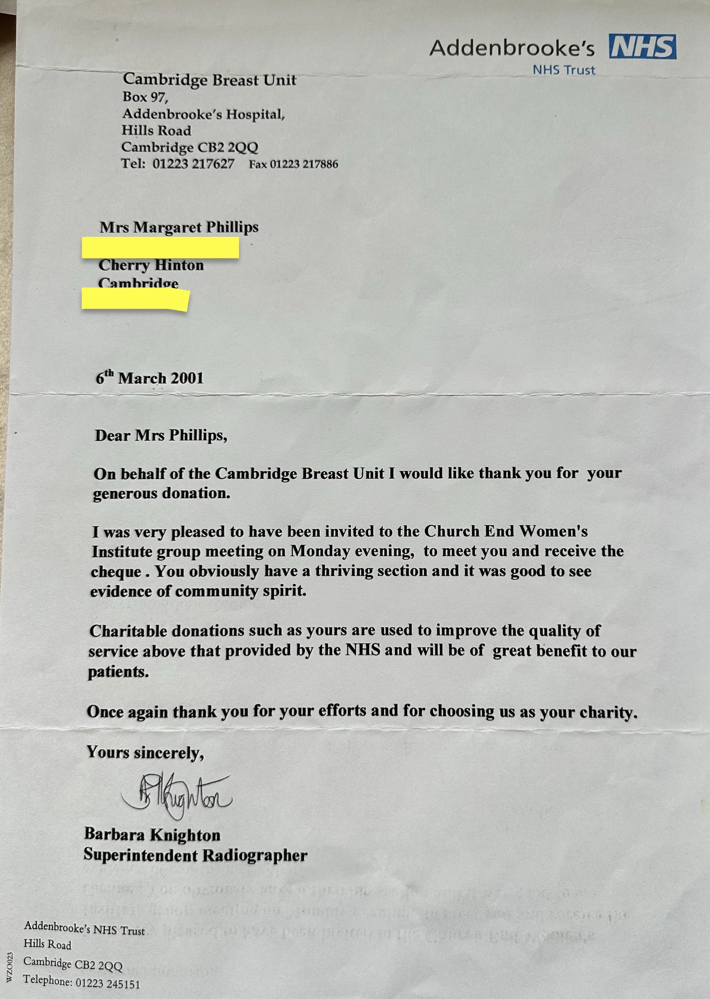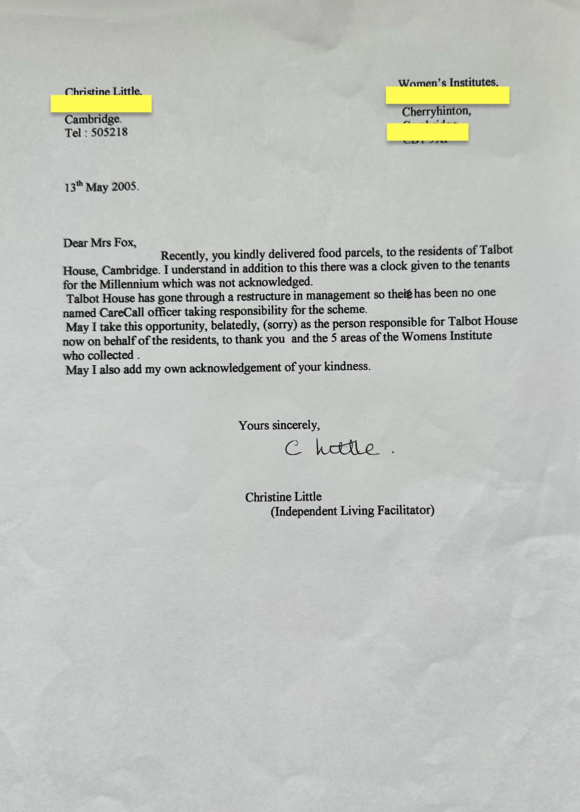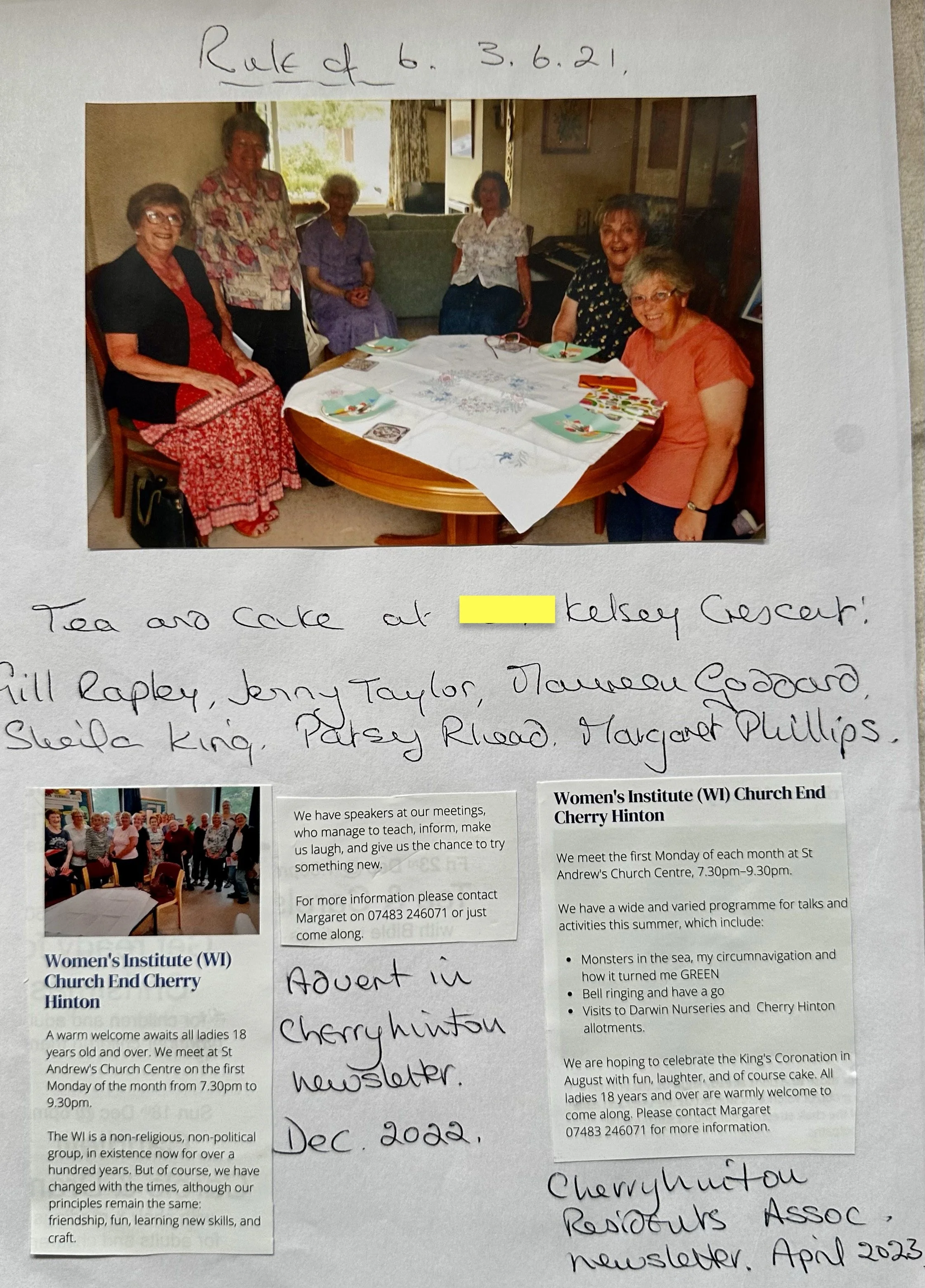 Here you will find the scrapbook of the Church End, Cherry Hinton Women’s Institute, which was active from 1990 to 2025. The folder was kindly donated to my archives by Sheila King following the group’s closure in 2025, after the WI headquarters were unable to accept it. It is preserved here for you to enjoy, containing many photographs, letters, cards, and cherished memories from the group over the years, featuring many familiar Cherry Hinton faces.