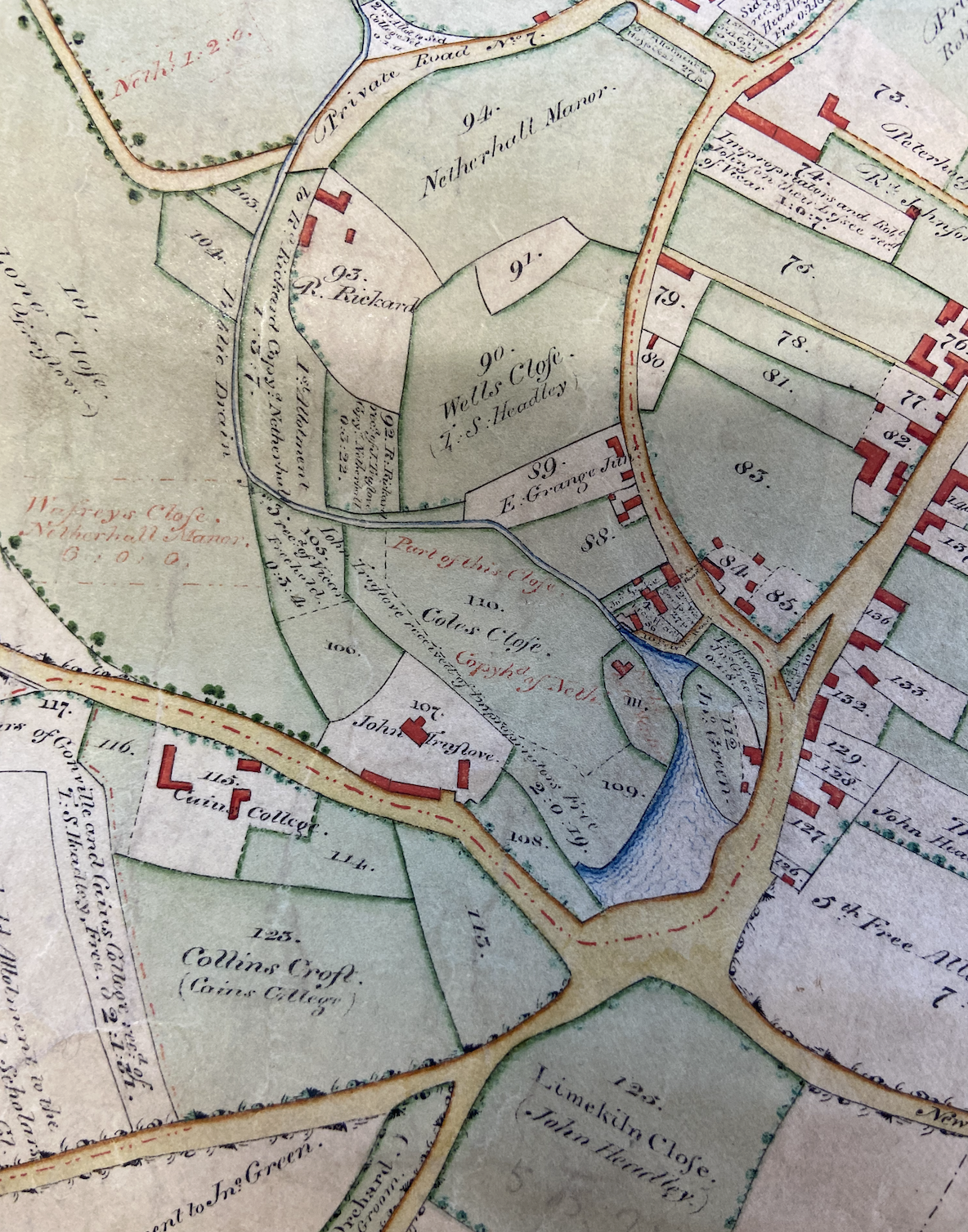 In 1758 Walter Serocold became the rector of Cherry Hinton Church. Rectors of Cherry Hinton Church were often Fellows of Peterhouse College, which owned much of the land in the parish, including Rectory Manor (which lay somewhere in the area of the current High Street shops). By 1789 Walter Serocold had passed away, as there is a new rector recorded. The draft enclosure map of 1806 shows Walter Serocold’s land had become a Rectory Glebe and was copyhold land held by John Green from Rectory Manor. Walter Serocold seems to have left the land around the west and north of Spring Head to Peterhouse College when he died.